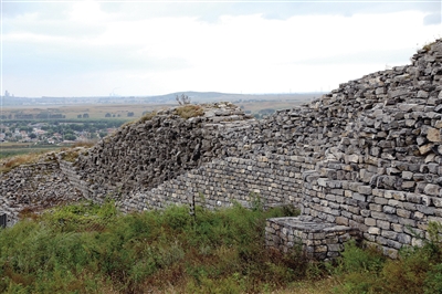 山城北部到西部的山势较缓,城墙修筑得最为坚固、壮观。城墙上可见马面9个,每个长逾8米、宽超5米、高达7米以上,间隔约40米。城墙基部砌出叠涩墙基,石块达13层。墙基石材为打制平整的楔形石,这些楔形石块互相交叉咬合,大头朝外小头朝里,每砌一二层后,内以扁条石和碎石叠压填平,以石块插合形成的拉力保证了城墙千年不倒。