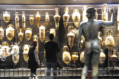 10月12日,人们在埃及亚历山大希腊罗马博物馆参观展出的文物。