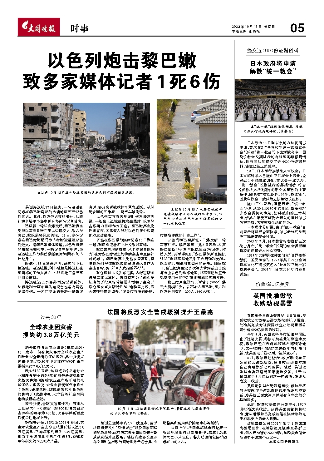 以色列炮击黎巴嫩 致多家媒体记者1死6伤