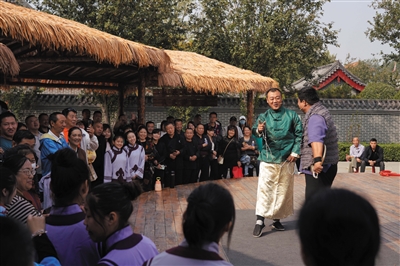 10月17日,杂技演员在吴桥杂技“九月庙会”上表演杂技节目。