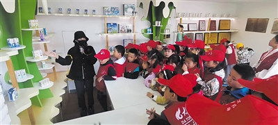 秋日的暖阳照在前行的路上,一个小时的车程后,牧同乳业园区映入眼帘,孩子们透过车窗观望生活在现代化牛棚中的奶牛。“我们这里有近1万头奶牛,按生长期安置在不同的牛棚生活。”“这边是‘沁牛区’,也就是可以挤奶的牛,它们的挤奶期可达305天。……”讲解员张老师结合实物为小记者讲解牧同乳业的相关情况,引领小记者了解企业文化及发展历程。