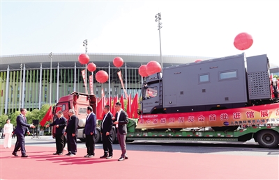 10月24日,第六届进博会首批展品进馆仪式在国家会展中心(上海)举行,这是展品进馆交接仪式现场。