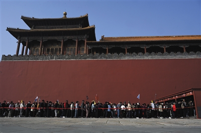 ▲10月24日上午,观众在午门广场排队等候进入故宫。