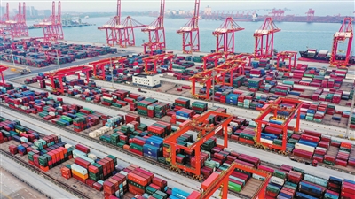 ◀10月23日拍摄的山东港口日照港集装箱码头(无人机照片)。