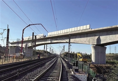 本报讯 (记者 尚铁军) 近日,集大原高铁御河特大桥跨大准铁路(48+80+48)米转体连续梁顺利完成转体后的中跨钢壳合龙施工,为贯通全线架梁通道迈出坚实一步。
