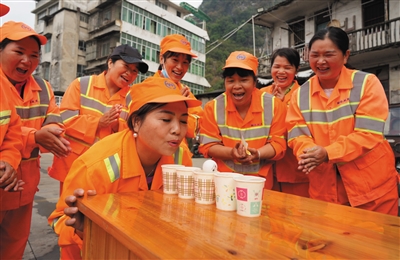当日是环卫工人节,环卫工人参加多彩趣味活动,欢庆节日。