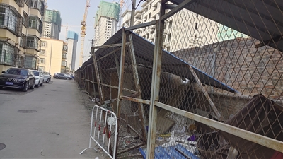 据沈先生讲,多年前,他们楼房北侧路旁搭建了一处宽约4米、长约50米,用铁管做支架、铁皮做棚顶的简易车棚。如今年久失修,一些接近地面的铁管支架变得锈迹斑斑,有的支架已经倾斜,而且车棚顶部也有部分塌陷。如果冬天下大雪或刮大风,车棚随时可能坍塌。希望通过媒体呼吁,引起有关部门重视,或加固或拆除,以消除安全隐患。