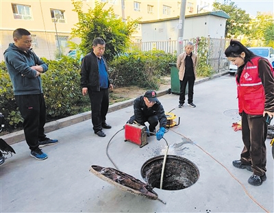 近日,柳航里社区接到居民反映,柳航里小区16号楼1单元下水管道堵塞,污物外溢,希望社区帮忙解决问题。得知情况后,社区工作人员第一时间现场查看,发现被堵下水管道是居民共用的排污管道,由于是老旧居民楼,必须彻底疏通排污管道才能解决问题。随后,社区协调物业工作人员,利用专业工具对下水管道进行疏通,清掏堵塞垃圾,用水管把堵塞物冲走,一边清理垃圾,一边观察井下积水,确保下水道正常排水。“太好了,这下不臭了,感谢社区及时协调,为我们疏通了这堵心的下水道。”居民王大爷拍手称赞。