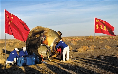 10月31日8时11分,神舟十六号载人飞船返回舱在东风着陆场成功着陆。 新华社发