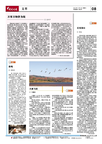 由此,想起一段“静坐听雨”的典雅往事。70多年前的一天,西南联大的一间教室里,老师正在讲课。突然,暴雨骤降,铁皮屋顶被暴雨冲击得如锣鼓齐鸣。学生们听不清老师讲课的内容,埋怨老天下雨没有找对时间。老师没急,笑着在黑板上写下四个大字:“静坐听雨!”大家静下心来,细细听雨。听着听着,雨声不再令人厌恶,仿佛变成一曲动人的打击乐!雨停了。老师问学生:“一样的雨声,为什么会产生不一样的效果呢?同是一双耳朵,为什么一会儿觉得雨声是噪音,一会儿又感到它是一首动听的打击乐?”