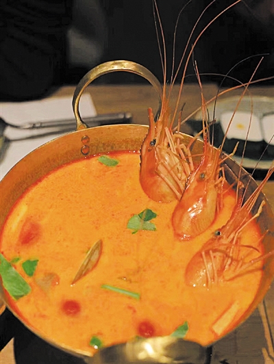 菜品方面,黄咖喱牛腩是必点菜。除了牛腩新鲜外,最大的特点就是店家秘制的咖喱。牛腩搭配上浓郁的咖喱汤汁,每一口都能感受到牛肉的鲜美和咖喱的辣香。古法冬荫功汤酸辣暖胃、富有层次,里面的内容也很丰富,在冬日里喝上一碗真的很过瘾。芒果糯米饭可以说是店内菜品的颜值担当,芒果加上软软糯糯的糯米饭,再淋上灵魂椰浆,一大口下去,满口椰奶的香气,让人吃得十分满足。此外,青柠檬蒸鲈鱼使用秘制青柠酱汁,鱼肉滑嫩入味,柔和的酸辣中带着微甜,口感丰富。 (孟维鹏)