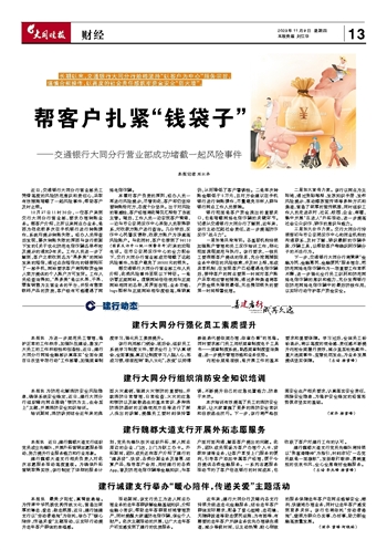 ~~~——交通银行大同分行营业部成功堵截一起风险事件