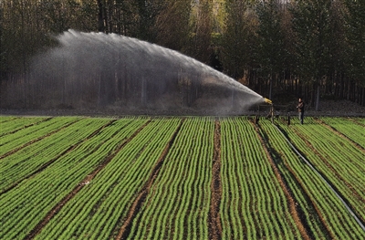 眼下正值冬小麦浇灌封冻水时节,河北省滦州市的农民们抢抓农时,采用喷灌、微喷等节水设备给冬小麦浇水,为来年的粮食丰收打好基础。