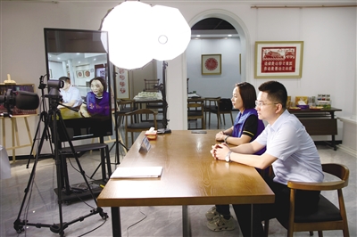 昨日,在平城区水泊寺街道文兴社区人大代表联络站的直播间里,社区工作人员与法律行业专业人士变身“网络主播”,耐心地为居民答疑解惑。作为人大代表履职的创新举措,直播间聚焦群众关心的重点问题、法律法规、就业指导等内容,让人大代表与社区居民进行零距离互动。 图为社区工作人员与法律专业人士正在通过直播解答居民的法律问题。 本报记者 韩堃 摄