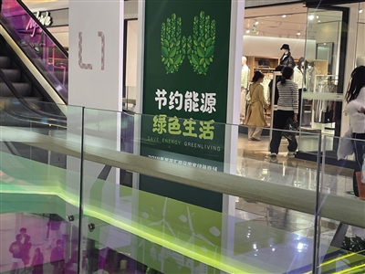 走到自动扶梯前,无人使用时扶梯会自动停止,有人使用时又恢复到工作状态,这是商场为了节省能耗采用的变频系统。在商场餐饮区,“光盘行动 惜粮惜福”“崇尚节俭 反对浪费”等宣传标语营造出浓厚的氛围,倡导大家厉行节约、绿色消费。