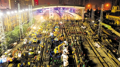11月16日凌晨,在济南火车站,由中铁十局承建的济(南)郑(州)高铁山东段引入济南枢纽济南站站改工程顺利完成。作为济郑高铁的控制性工程,本次施工需要在7个半小时内,工务、电务、电牵等多专业同步作业,完成线路拨接、大机捣固、信号设备倒接启用、接触网改造等多项站改任务。