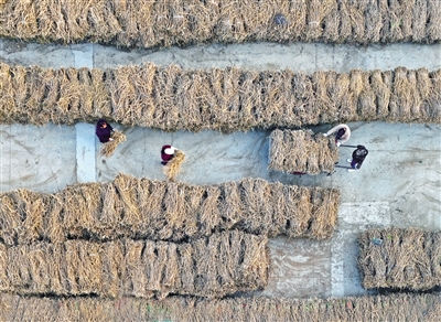 作为巩固拓展脱贫攻坚成果同乡村振兴有效衔接的主导产业,近年来,浑源黄芪种植已遍布10个乡镇。目前,全县规范化种植面积达到23万亩,年可采刨鲜芪2500万公斤,黄芪全产业链年产值达5亿元。截至去年底,全县有黄芪种植加工企业398个,3万多户芪农靠着黄芪走上了致富路。图为山西北岳神耆生物科技股份有限公司正在晾晒采挖回来的黄芪。