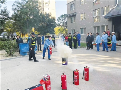▶ 近日,平城区柳港园南院社区联合国天物业在柳港园C区开展消防演练,讲解逃生知识,演示正确使用灭火器,并进行了灭火实操。