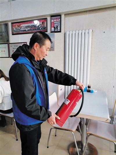 ◀ 为全面做好辖区消防安全工作,平城区桥北社区工作人员对辖区商铺进行消防安全隐患排查,营造安全生活环境。