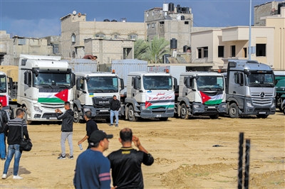 11月20日,装载野战医院设备的货车停在加沙地带南部城市汗尤尼斯。