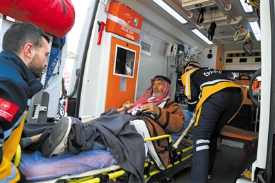 ▶ 11月20日,在土耳其安卡拉,一名来自加沙的病人被送上救护车。