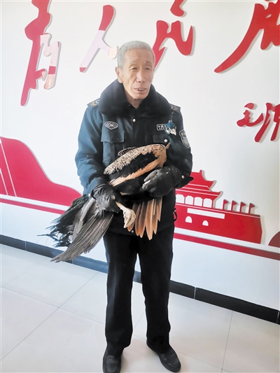 本报讯 (记者 尚丽) 孔雀是动物园里的“宠儿”,在路上遇到孔雀绝对是一件稀奇的事。近日,平城区卧虎湾街道景海花园小区一清洁工张社会就在工作时偶遇了一只小孔雀,经及时与社区、公安联动,将孔雀妥善安置。