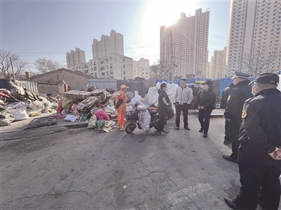 据了解,该街道辖区内有5家废品收购站,集中在西环路军矿大院周边。自城市精细化管理工作开展以来,废品收购站周边环境卫生问题整治工作取得了一定成效,但部分废品收购站仍存在无证照经营、占道摆放废旧品、门前脏乱差等问题。本次联合执法行动中,工作人员对各家废品收购站基本情况进行了仔细核实,认真登记经营场地、详细地点及从业人员等重要信息,做到情况清底数明,对在居民楼内的一家废品收购站和一家无营业执照的废品收购站责令停业整顿。此外,还对废品回收人员进行相关法规宣传,普及环境保护及安全知识,提高废品分类意识和环保意识。