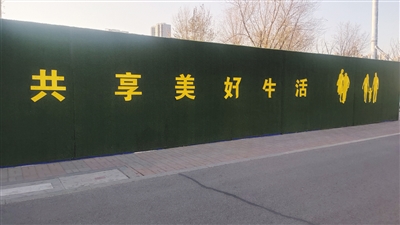 据隋女士讲,前两年他们小区东侧拆迁后,有关部门加了围挡,并在围挡上面包装了仿真草坪,还张贴了各种宣传语,显得整洁美观。可随着时间的推移,加上风吹日晒,如今很多字出现了缺胳膊短腿现象,比如,文明的“文”字少了一点,看上去像个“又”字;生活的“生”字少了最下边的一横,成了“牛”字;协力的“力”字一撇上面出头部分没有了,成了“刀”……既不美观,也容易产生歧义。