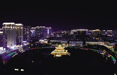 图为夜幕下的北魏明堂遗址公园。