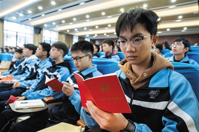 12月4日,在浏阳市第一中学,学生在阅读宪法读本。
