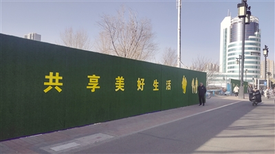 东花园里小区东侧拆迁后,有关部门加了围挡,并在围挡上面包装了仿真草坪,还张贴了各种宣传语。可时间久了,由于风吹日晒,很多字出现了缺胳膊短腿现象,既不美观,也容易产生歧义。对此,苹果园社区有关负责人表示,他们会与有关单位联系,尽快处理(见本报11月29日相关报道。)