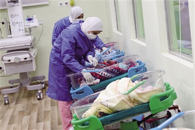 从加沙转移的部分早产儿在埃及医院接受治疗