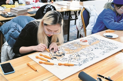 开营仪式上,中国美协插图装帧艺委会副主任武将介绍了创作营基本情况,创作代表倪政鹏作了表态发言,活动现场还刻制了年画作品《一飞冲天》。在年画创作现场,创作者以木版年画创作为主,或认真绘制电子稿,或用刻刀细细描绘,或就年画内容以及表现技巧进行交流探讨。一幅幅作品无论是在表现题材上,还是立意方面,都以人民生活为中心,表现新时代美好生活以及对祖国、对人民的美好祝福。创作者纷纷表示,本次活动不仅让大家感受到了年画魅力,也激发了人们保护、传承、创新非物质文化遗产的热情。