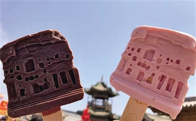 游览云冈石窟,文创雪糕自然是不能错过的。五华洞位于云冈石窟的第9-13窟,文创雪糕将五华洞的第12、13窟外景按比例刻印在雪糕上,造型别致,有巧克力、哈密瓜、草莓、海盐芝士、芒果5种口味。雪糕签子由上等毛竹制成,吃完后还可以清洁干净当书签。