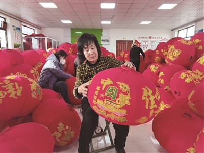 近年来,瓜园村聚焦乡村产业振兴,引进手工编织项目,发展居家产业、炕头经济,让村民在家门口实现了就业挣钱。瓜园村灯笼加工车间工人王秀平说:“每到冬天,我们女人们就有事儿做了,做灯笼、做草绳,每天能收入100来块钱。”“我们的灯笼都是订单生产的,外销能卖到北京、河北和内蒙古,目前已经订出20万只。”瓜园村村委会主任李德军说。