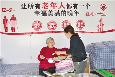 日前,在灵丘县上寨镇石矾村颐养之家,工作人员把饭菜端到老人面前。