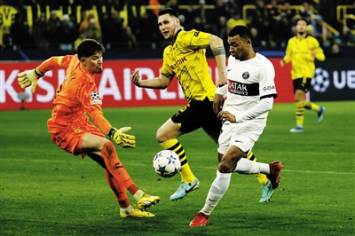 2023-2024赛季欧冠联赛13日进行最后一轮小组赛的最后8场比赛,巴黎圣日耳曼客场1∶1战平多特蒙德,以小组第二名搭上晋级16强的末班车;马德里竞技主场2∶0击败拉齐奥,锁定E小组头名。