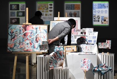 ▶12月16日,观众在欣赏展出的文创作品。