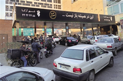 12月18日,车辆在伊朗首都德黑兰的一家加油站外排队等待加油。