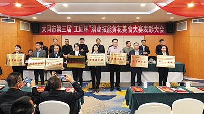 市餐饮饭店业协会会长贺军说,近年来,我市餐企在传承老工艺、老技术的基础上,大力弘扬工匠精神,不断创新发展,制作出一批融入地方特色和创新元素的风味美食,尤其是黄花系列创新菜品及食品,更是备受外地游客青睐。这次黄花美食团宴名菜烹饪大赛,不仅是大同黄花美食的展示,也是大同餐饮人工匠精神的展示。今后,职工技能竞赛和“六比六看”活动都会继续开展,以提高大同餐饮人岗位职业技能水平,更好地为大众服务,为我市“国际美食之都”招牌增光添彩。
