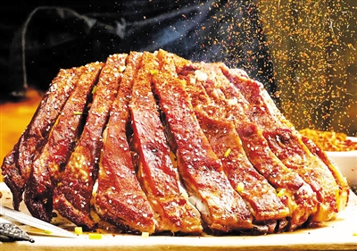 此外,现在一些烧烤店推出的烤羊排也是别有风味。一桌人围坐在烤架旁,小火温热着吱吱冒油的羊排,人们边喝酒,边不时用小刀切一片肉下来,蘸上干料吃特别鲜美。 (一凡)