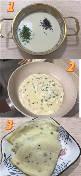 转眼已至深冬,天气寒冷,炸糕片、欻[chuā]饼是晋北大同人家里常吃的“快手饭”。大同人吃糕一般会採好一大盆,吃不完就捏成一片一片的圆片,放外边冻起来。再吃时,就将糕片解冻,入油锅炸至起泡捞出,在上面撒白糖或红糖即可。炸出的糕片,撒上糖后再摞一个糕片,再撒糖,如此往复,吃时糖已融化,软糯香甜。欻饼,是将面糊里放盐、葱花、芝麻、打散的鸡蛋等,饼铛预热、刷油,用勺子将面糊舀入锅中心,只听“欻”的一声,面糊流向四周,然后快速用锅铲摊薄、摊匀成圆形,数个1、2、3、4、5就能出锅开吃了。“欻”为象声词,因面糊进入热锅时,使热锅急速降温而发出短促而响亮的声音。味蕾可以勾起回忆,记得小时候一到冬天奶奶家每天的主食无外乎莜面、黄糕、块垒,但只要我和妹妹一起去了,奶奶就会打一颗鸡蛋和一碗面给我们烙欻饼,我三张,妹妹两张,黄澄澄、喷喷香、松松脆,烙好的欻饼白嘴儿吃就很美味,也可以沾一点酱油,或是抹一层酱豆腐,运气好碰上家里有猪头肉放里面一卷,那简直会快乐到飞起。时光荏苒,来自老人亲手做的欻饼,想想都是浓浓的爱意。
