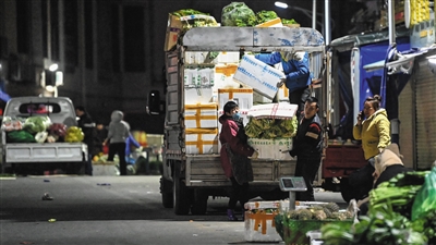 12月23日,在广西钦州市的蔬菜集散地东风市场,商贩在搬运蔬菜。
