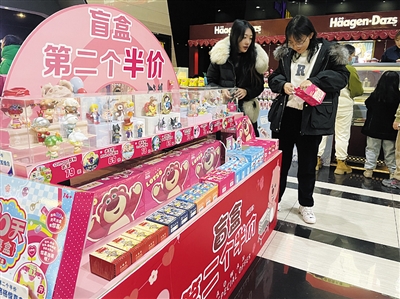 记者在永泰南路一商场内盲盒售卖区看到,五颜六色、规格不一的盲盒外观印有“开袋有惊喜”“内有隐藏款”等字眼,激发着消费者的猎奇心理,也吸引了不少年轻消费者围在一起扫码购买。拆开后有的是化妆品,有的是毛绒玩具,还有的是生肖类文创产品。“一入盲盒深似海,从此存款说拜拜。”25岁的孙志娜笑称,目前自己的薪资并不能实现买车计划,而十几元就能买到的盲盒,却能给她带来不少快乐。市民师国栋说,他曾抱着“小确幸”的心理买过一次盲盒,没有开出自己心仪的商品,买的时候花了29.9元,拆开后觉得商品做工并不值这个价,后来就再也没买过盲盒了。