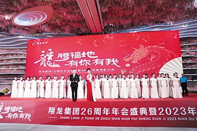 1月1日,翔龙集团26周年年会盛典暨2023年度表彰大会在云冈大酒店举行。年会总结过去一年的收获,对评选出的年度先进单位、先进集体、优秀个人进行表彰,期待新的一年求实务进,再启新征程。此次年会,也是龙园艺术文化绽放的大舞台,歌舞、模特走秀、诗歌朗诵、小品,公司员工和业主自编自导自演节目,呈现了一场高规格、高品位的文化盛宴。 柳敏 摄