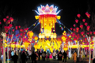 近日,2024年淄博玉黛湖花灯会在山东省淄博市张店区玉黛湖公园拉开帷幕。此次花灯会以“穿越千年 点亮盛世”为主题,共布置大型花灯60余组,将持续举办至3月11日。 新华发社