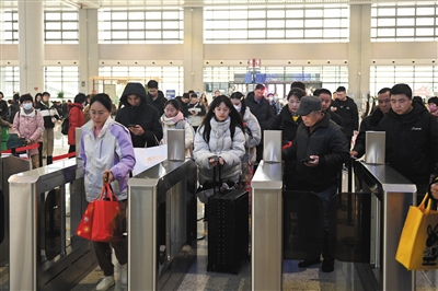 ▲1月8日,旅客在绍兴嵊州新昌站候车大厅检票。