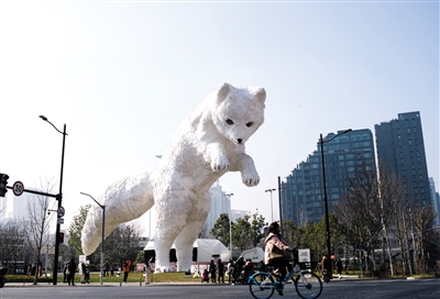 近日,一个名为《Let's Jump 跳跃吧!北极狐》的跨界艺术展示装置作品亮相上海苏河湾万象天地,装置主体是一只呈现跳跃姿态的“北极狐”,该艺术装置作品出自“大黄鸭”的设计者荷兰艺术家弗洛伦泰因·霍夫曼。灵动活泼的北极狐形象,为冬日申城街头增添一抹亮色。 新华社发