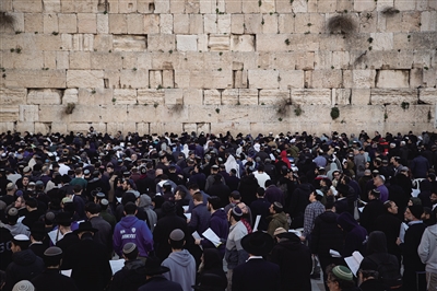 1月10日,在耶路撒冷老城西墙,民众参加祈祷和祝福活动。