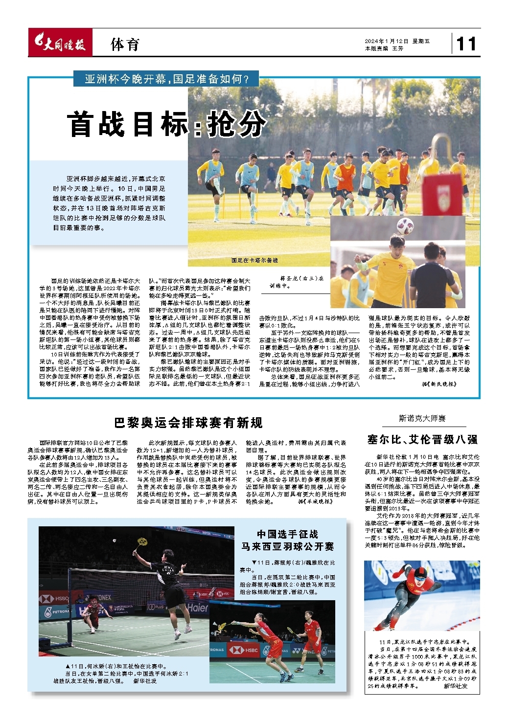 亚洲杯今晚开幕,国足准备如何?~~~亚洲杯脚步越来越近,开幕式北京时间今天晚上举行。10日,中国男足继续在多哈备战亚洲杯,抓紧时间调整状态,并在13日晚首场对阵塔吉克斯坦队的比赛中抢到足够的分数是球队目前最重要的事。